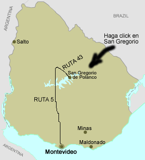 Por Ruta 5 avanzar hasta el mojon del Km 306 donde tomamos la Ruta 43 por 57 Km